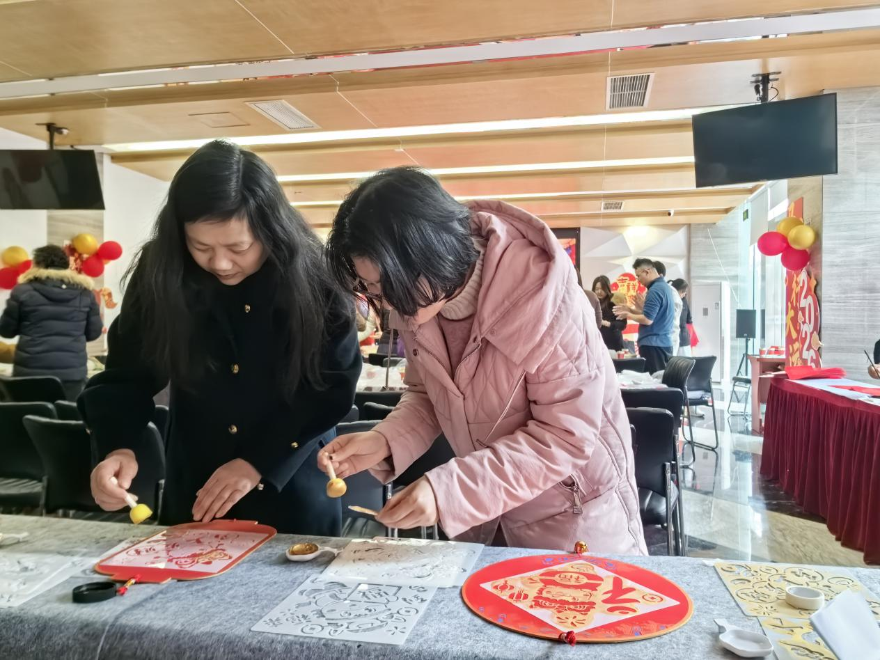 寫福字對聯及民俗拓印區,新立訊黨員代表與社區黨員共同創作,紅紙、毛筆、墨汁與拓印模板成為傳遞新年美好寓意的載體,增添節日儀式感。