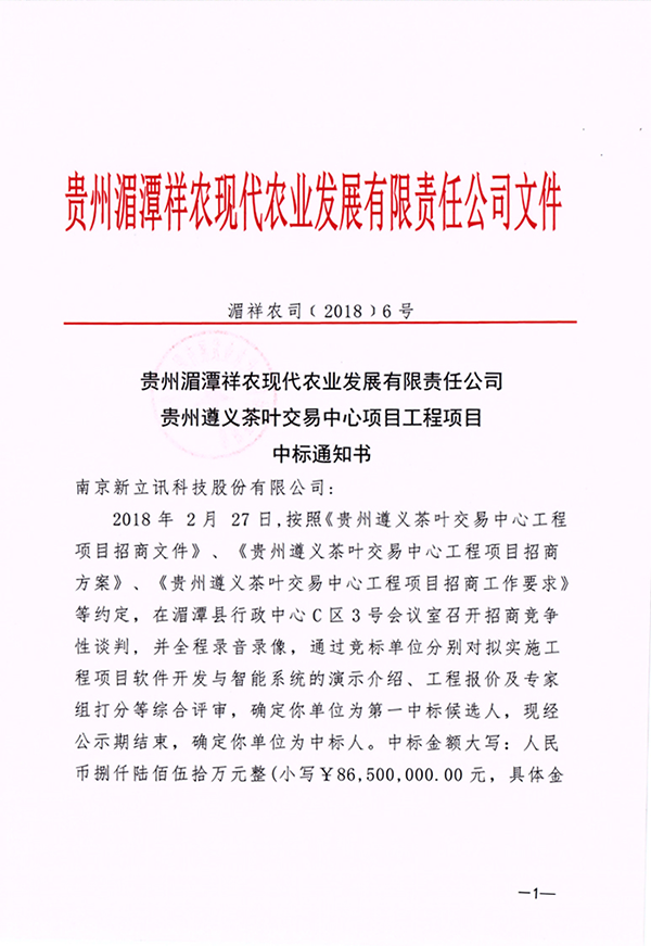 春節剛過,即傳來喜訊:2018年2月27日,新立訊中標貴州遵義茶葉交易中心“智慧茶交所”工程項目,項目造價8700余萬元。