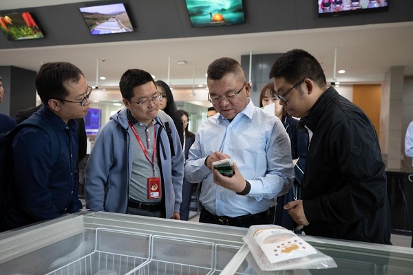 楊建華一行參觀了交易中心一樓的電子交易大廳、特色展館區、物聯網監測中心、鑒真溯源防偽中心、超算中心以及網紅直播區,對交易中心特色電商業務開展、技術保障、進行全面了解。青海農林牧商品交易中心技術負責人向大家詳細介紹了交易中心的業務組成與大數據核心技術、信息安全及新立訊“愛查必查”、“鑒真溯源云平臺”等。