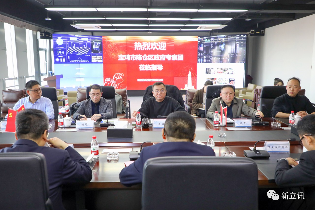 2023年3月1日,陜西省寶雞市陳倉區委常委、副區長閆啟東,陜西省寶雞市陸港新城事務中心副主任戴智及政府辦,招商局,農業局,商務局,科技工業園區等領導同志蒞臨新立訊總部調研,新立訊董事長毛霖攜在家公司領導陪同調研。